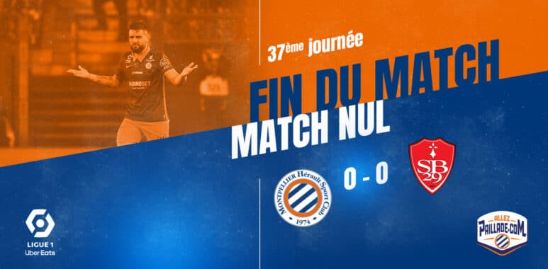 Les Pailladins terminent à la Mosson avec un nul. Après une première mi-temps insipide, marquée notamment par l’expulsion évitable de Florent Mollet, Montpellier allait devoir résister. Et si les 0-0 auront été rares cette saison, ce n’est pas sur cette rencontre qu’on aurait misé. Brest a presque tout donné mais n’est jamais parvenu à marquer quand les hommes de Michel Der Zakarian ont eu quelques opportunités pour un hold-up. Une dernière rencontre attend nos joueurs à Nantes la semaine prochaine pour clôturer cette saison. A la vue des autres résultats du soir, les regrets seront totaux encore une fois.