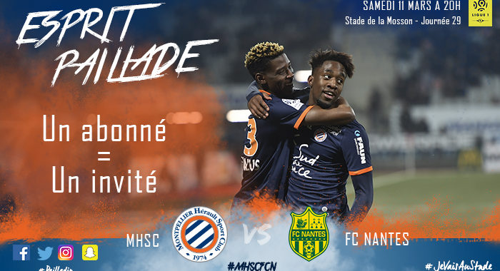 Le club continu ses efforts pour remplir la Mosson. Cette fois-ci, c’est les abonnés qui ont la possibilité d’inviter gratuitement un ami/proche pour voir le match contre Nantes.