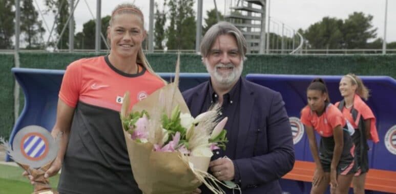 C’est la journée des départs du côté du Montpellier Hérault. Après un premier point sur le staff de l’équipe masculine, le club pailladin a annoncé le départ d’une cadre de l’équipe féminine, Anouk Dekker. Après 6 saisons passées dans l’Hérault, l’internationale néerlandaise quitte Grammont. Laurent Nicollin l’a remerciée personnellement et lui a remis un trophée symbolique lors de l’entraînement de la section.