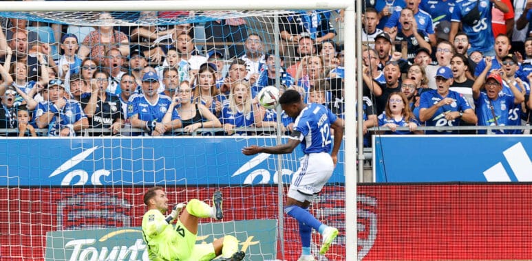 En seconde période, le portier pailladin allait forcément être sollicité. Les Alsaciens, sous un nouveau visage, prenaient d’assaut la défense montpelliéraine et se rapprochaient des buts protégés par le numéro 40 qui dès la 50ème minute sauvait son équipe. Après cela, la malchance venait prendre le dessus. Sur la réduction du score strasbourgeoise, s’il aurait pu être loué pour sa lecture du jeu en décidant de ne pas mettre la main sur la frappe de Delaine, en déviant la balle d’une main ferme, il aurait évité de la voir rebondir sur son montant avant de ricocher sur sa jambe. Un sort malheureux pour un joueur si performant match après match. Et que dire de l’égalisation des hommes de Patrick Vieira. Idéalement servi par Delaine, encore lui, Mothiba poussait Benjamin Lecomte à réaliser un superbe arrêt réflexe sur sa ligne à bout portant. Pour rien puisque, malchanceux, la gonfle revenait sur l’attaquant sud-africain qui n’avait plus qu’à finir l’action.