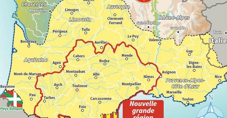 1. Les limites géographiques retenues sont celles de la région administrative Occitanie, telles qu’elles ont été établies en 2014. Historiquement, les frontières de l’Occitanie sont bien plus amples, elles s’étendaient de Bordeaux à Gap en passant par Clermont-Ferrand et Limoges au Nord.